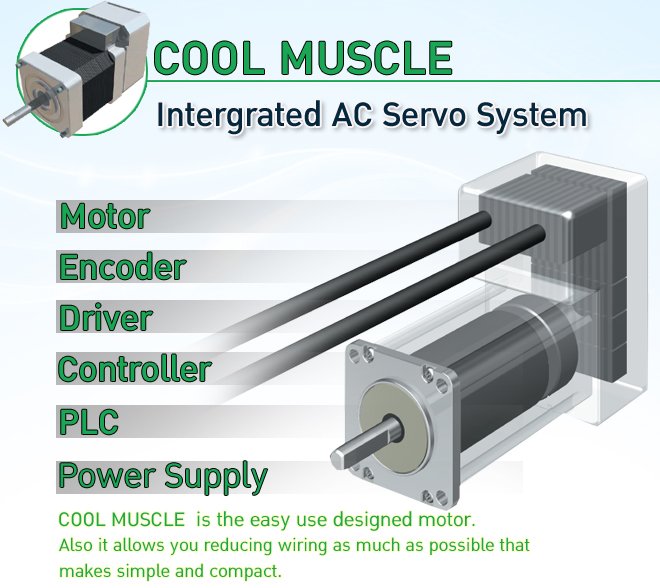 COOL MUSCLE is the integrated AC servo system that combines all functions for motion control. The use of its own program language "CML" allows for easy creation and control of motion such as PTP motion, torque control. COOL MUSCLE provides the highest system solution.