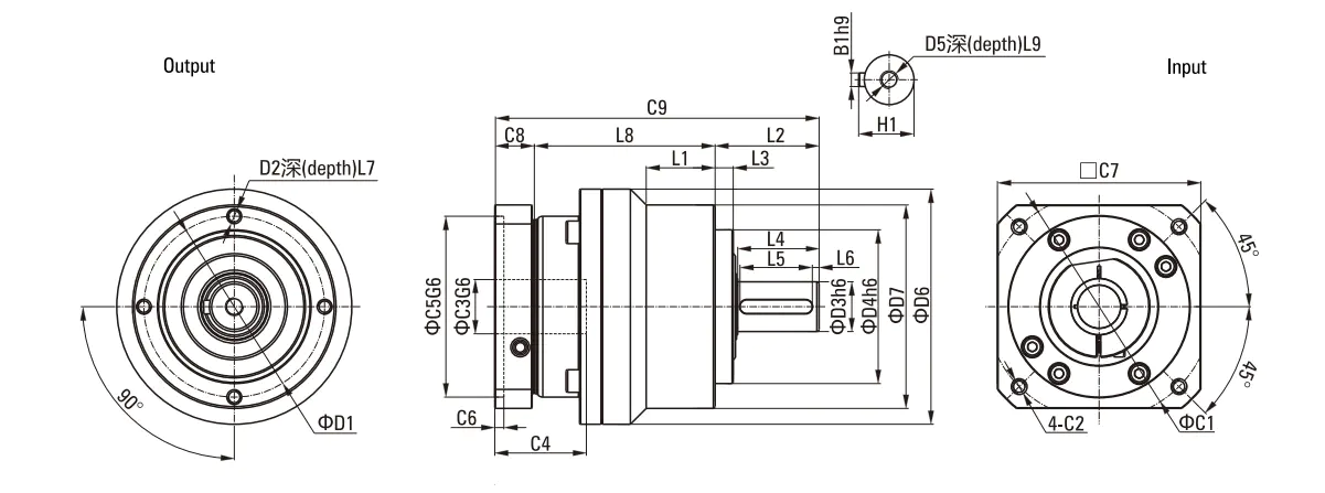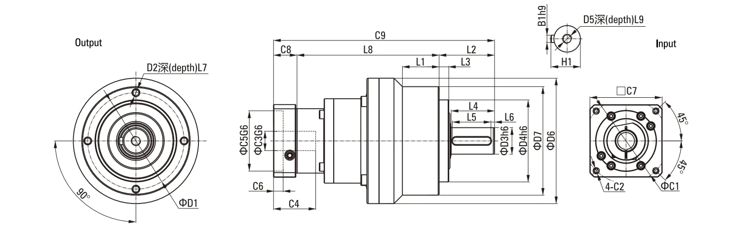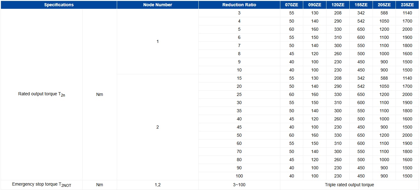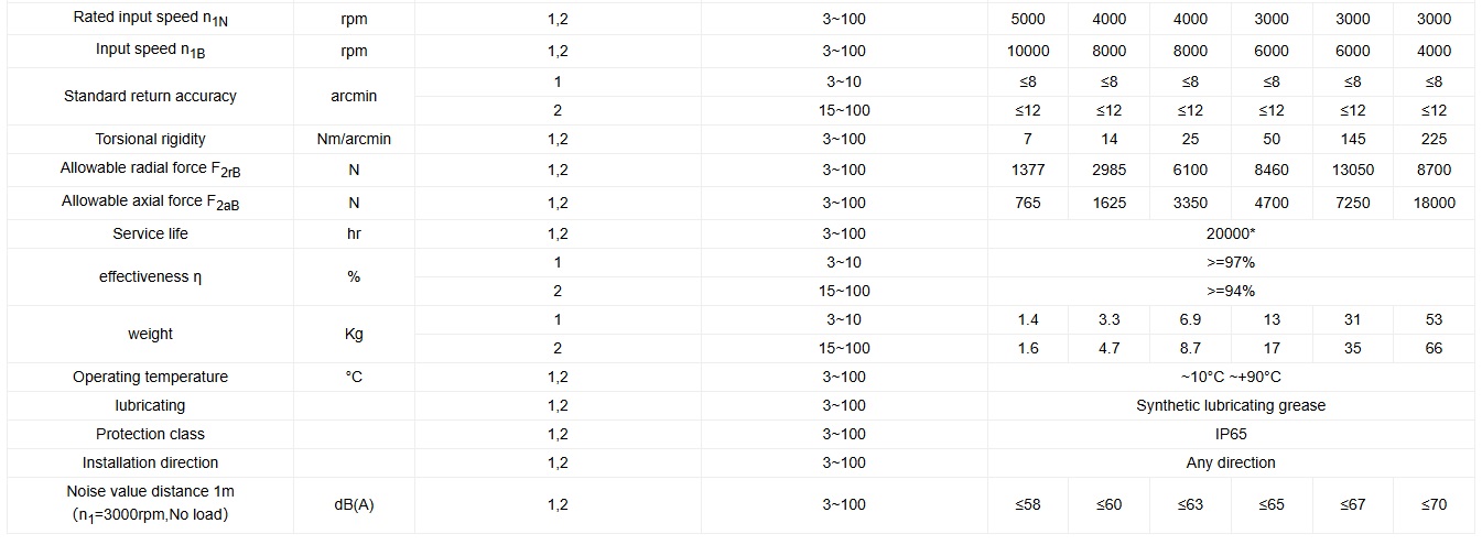 1.Reduction ratio( i=Nin/Nout ) 2.Acceleration torqueT2B= 60% of T2NOT 3.When the output speed is 100гpm, it acts on the center position of the output shaft.